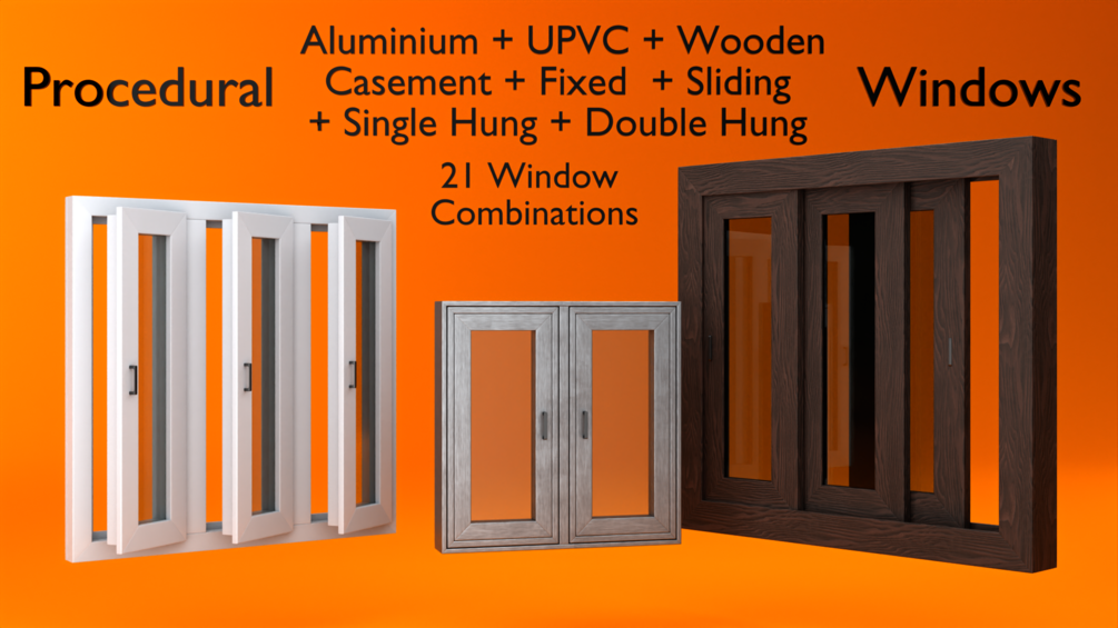 Procedurally generate Casement, Fixed, Sliding, Single and Double Hung windows in Aluminium, UPVC and Wooden materials.